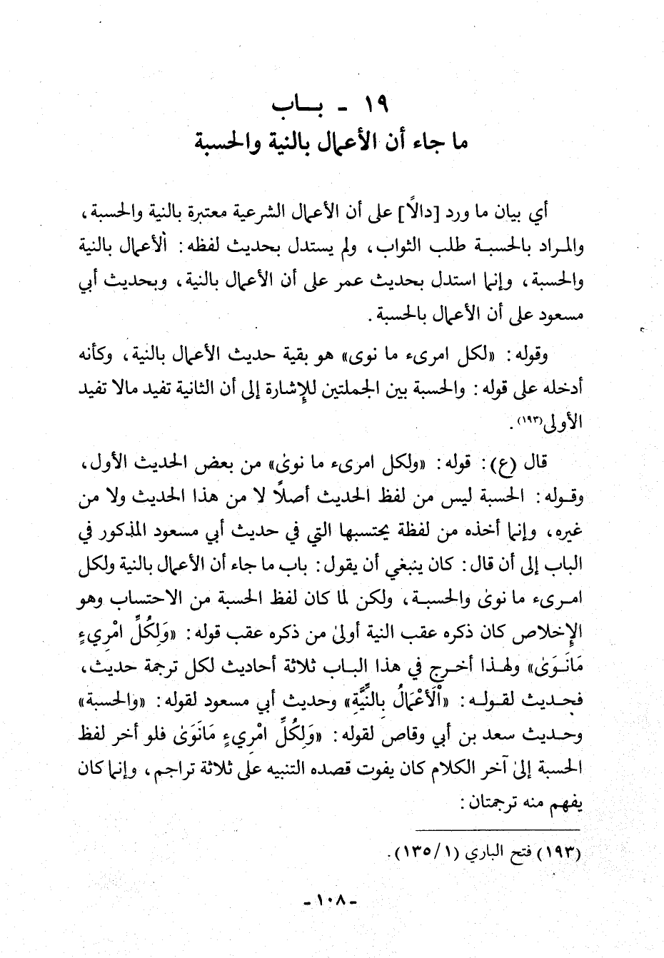 19 - باب ما جاء أن الأعمال بالنية والحسبة