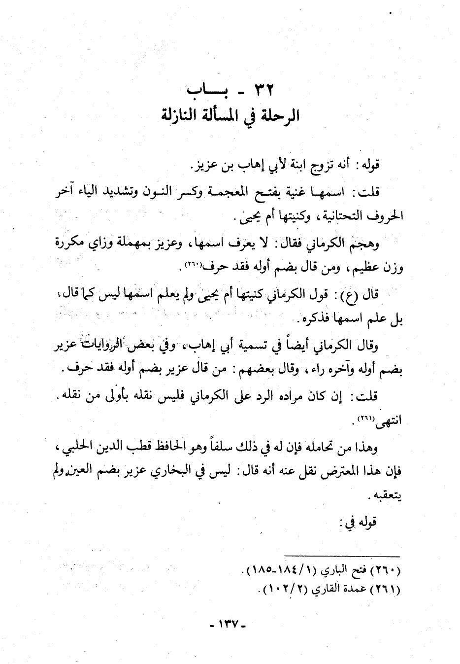 وقال الكرماني أيضًا في تسمية أبي إهاب، وفي بعض الروايات عزير بضم أوله وآخره راء، وقال بعضهم: من قال عزير بضم أوله فقد حرف.