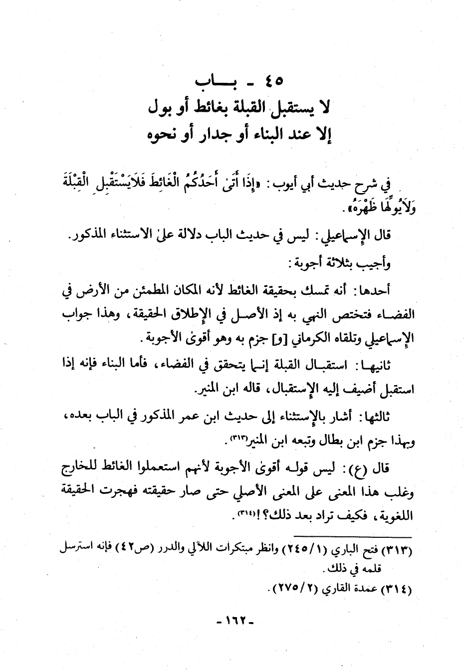 45 - باب لا يستقبل القبلة بغائط أو بول إِلَّا عند البناء أو جدار أو نحوه