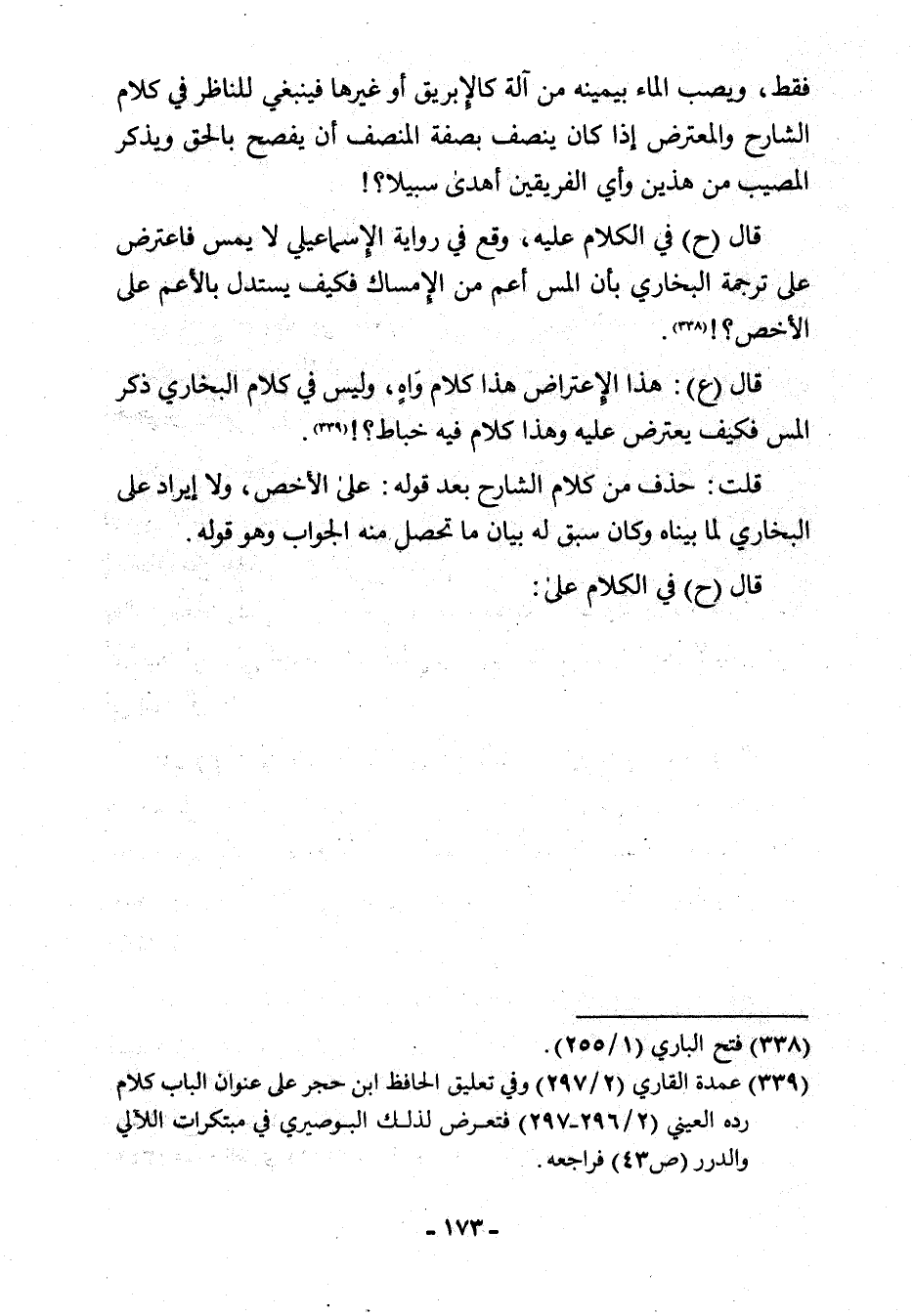 قال (ع): هذا الإِعتراض هذا كلام وَاهٍ، وليس في كلام البخاريّ ذكر المس فكيف يعترض عليه وهذا كلام فيه خباط؟! (¬339).