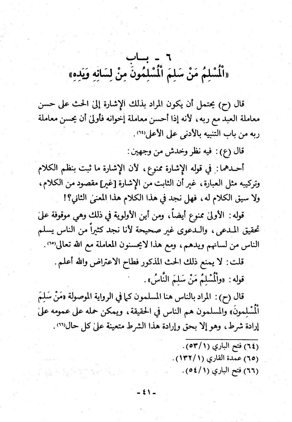 6 - باب "المُسْلِمُ مَنْ سَلِمَ المُسْلِمُونَ مِنْ لِسَانهِ وَيَدِهِ"