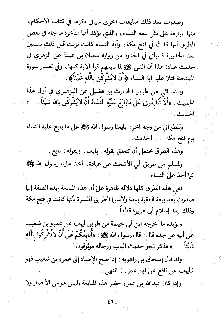 وصدرت بعد ذلك مبايعات أخرى سيأتي ذكرها في كتاب الأحكام، منها المبايعة على مثل بيعة النِّساء، والذي يؤكد أنّها متأخرة ما جاء في بعض الطرق أنّها كانت في فتح مكّة، وآية النِّساء كانت نزلت قبل ذلك بسنتين بعد الحديبية فسيأتي في الحدود من رواية سفيان بن عيينة عن الزّهريُّ في حديث عبادة هذا أنّ النّبيّ - صلّى الله عليه وسلم - لما بايعهم قرأ الآية كلها، وفي تفسير سورة الممتحنة فتلا عليه آية النِّساء {أَنّ لا يُشْرِكْنَ بِاللهِ شَيْئًا}.