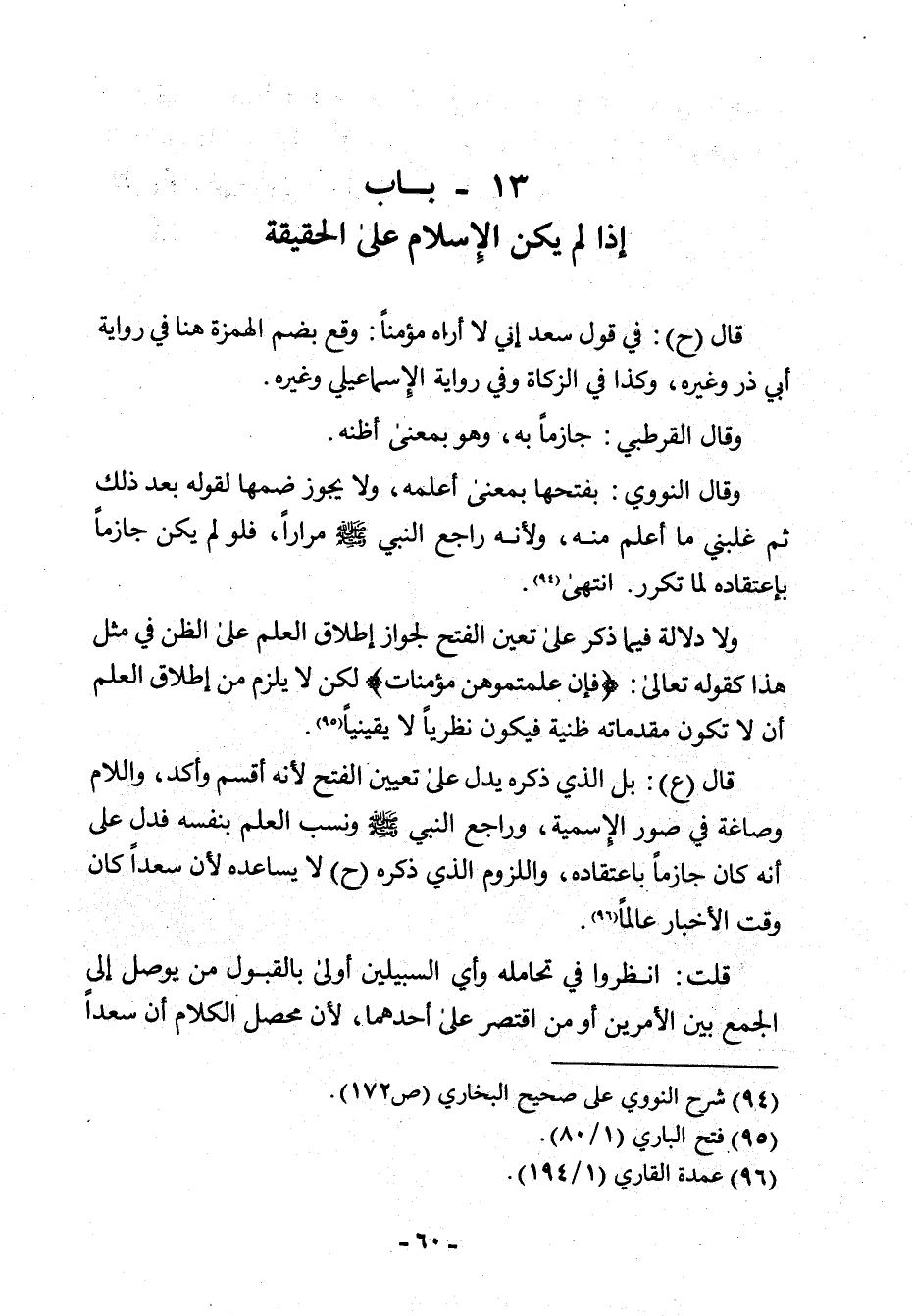 13 - باب إذا لم يكن الإسلام على الحقيقة