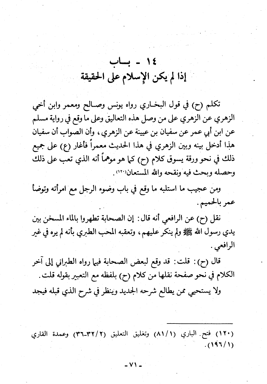 14 - باب إذا لم يكن الإسلام على الحقيقة