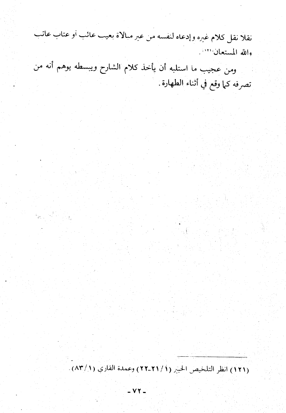 نقلا نقل كلام غيره وادعاه لنفسه من غير مبالاة بعيب عائب أو عتاب عاتب والله المستعان (¬121).