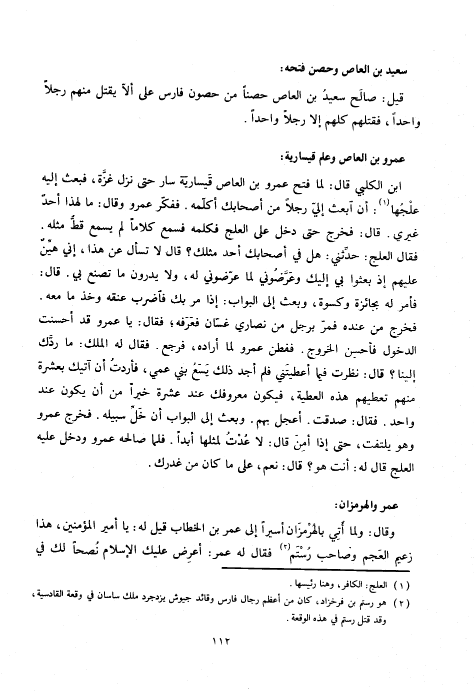 : وقال: ولما أتي بالهرمزان أسيرا إلى عمر بن الخطاب قيل له: يا أمير المؤمنين، هذا زعيم العجم وصاحب رستم «2» فقال له عمر: أعرض عليك الإسلام نصحا لك في