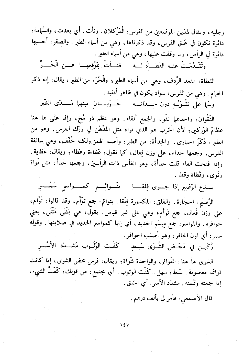 الشوى ها هنا: القوائم، والواحدة شواة؛ ويقال: فرس محض الشوى، إذا كانت قوائمه معصوبة. سبط: سهل. كفت الوثوب. أي مجتمع، من قولك: كفتّ الشيء، إذا جمعته وتمّمته. مشدّد الأسر: أي الخلق.