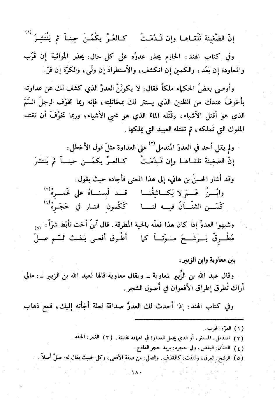 إنّ الضّغينة تلقاها وإن قدمت ... كالعرّ يكمن حينا ثم ينتشر «1»