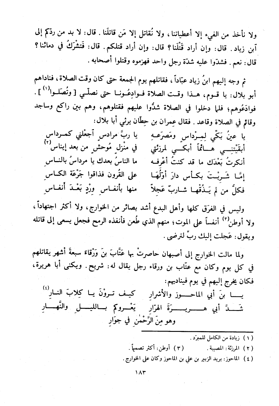 ثم وجه إليهم ابن زياد عبّادا، فقاتلهم يوم الجمعة حتى كان وقت الصلاة، فناداهم أبو بلال: يا قوم، هذا وقت الصلاة فوادعونا حتى نصلّي [وتصلوا] «1» .
