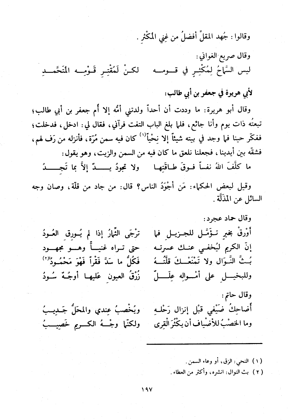 وقيل بعض الحكماء: من أجود الناس؟ قال: من جاد من قلّة، وصان وجه السائل عن المذلّة.