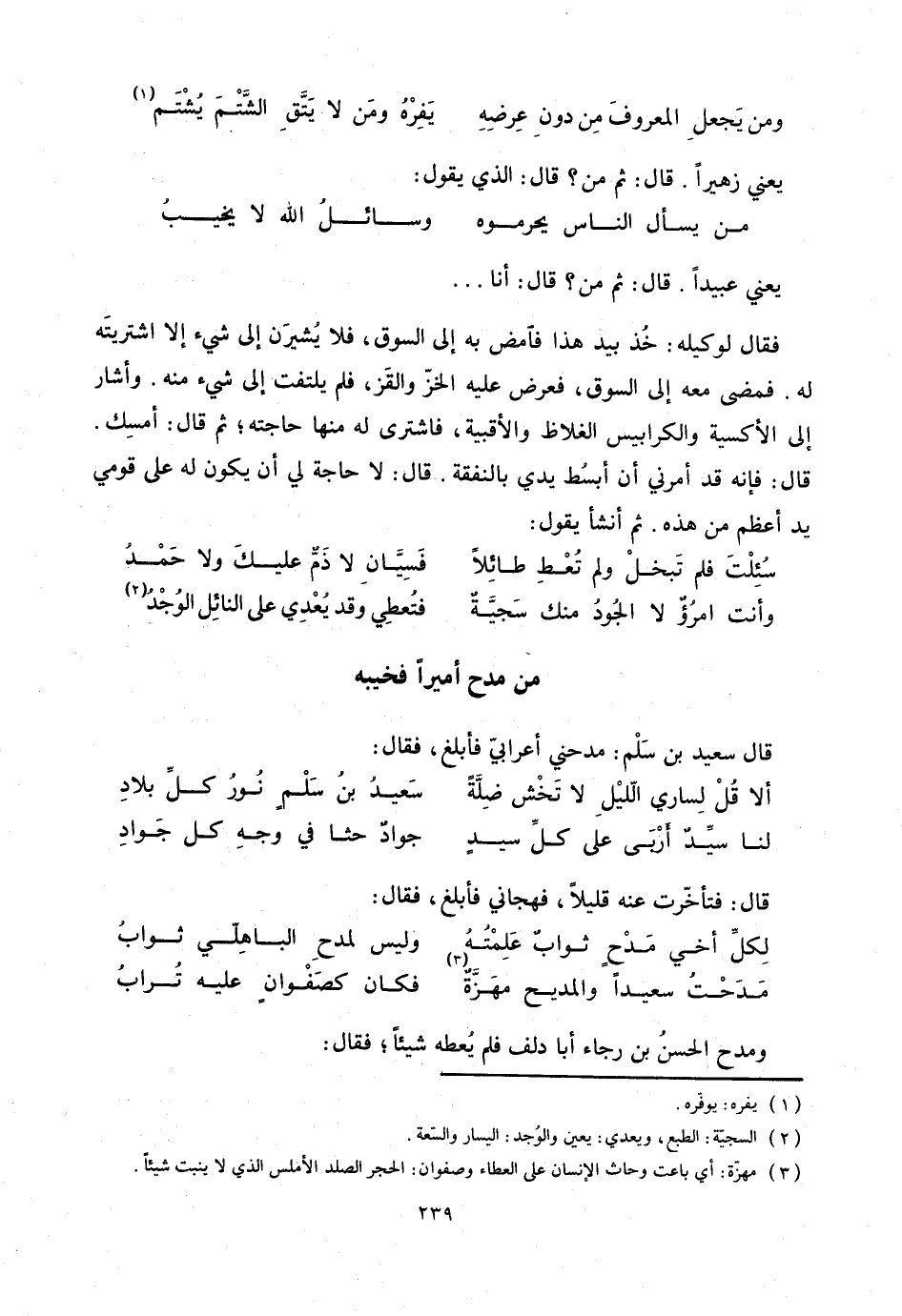 قال سعيد بن سلم: مدحني أعرابيّ فأبلغ، فقال: