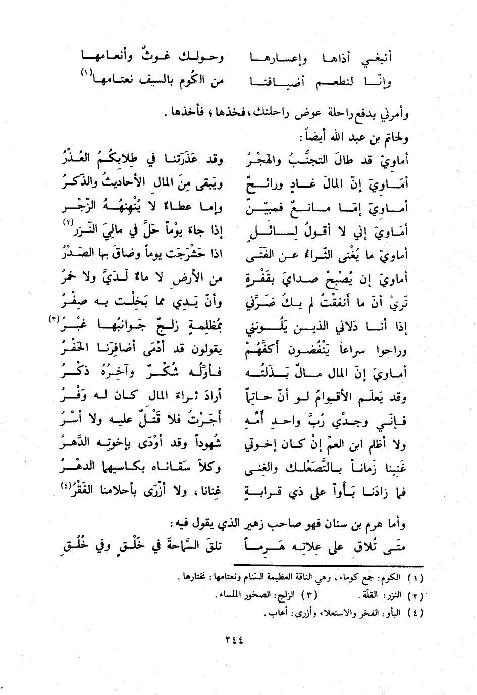 أماويّ إنّ المال غاد ورائح ... ويبقى من المال الأحاديث والذّكر