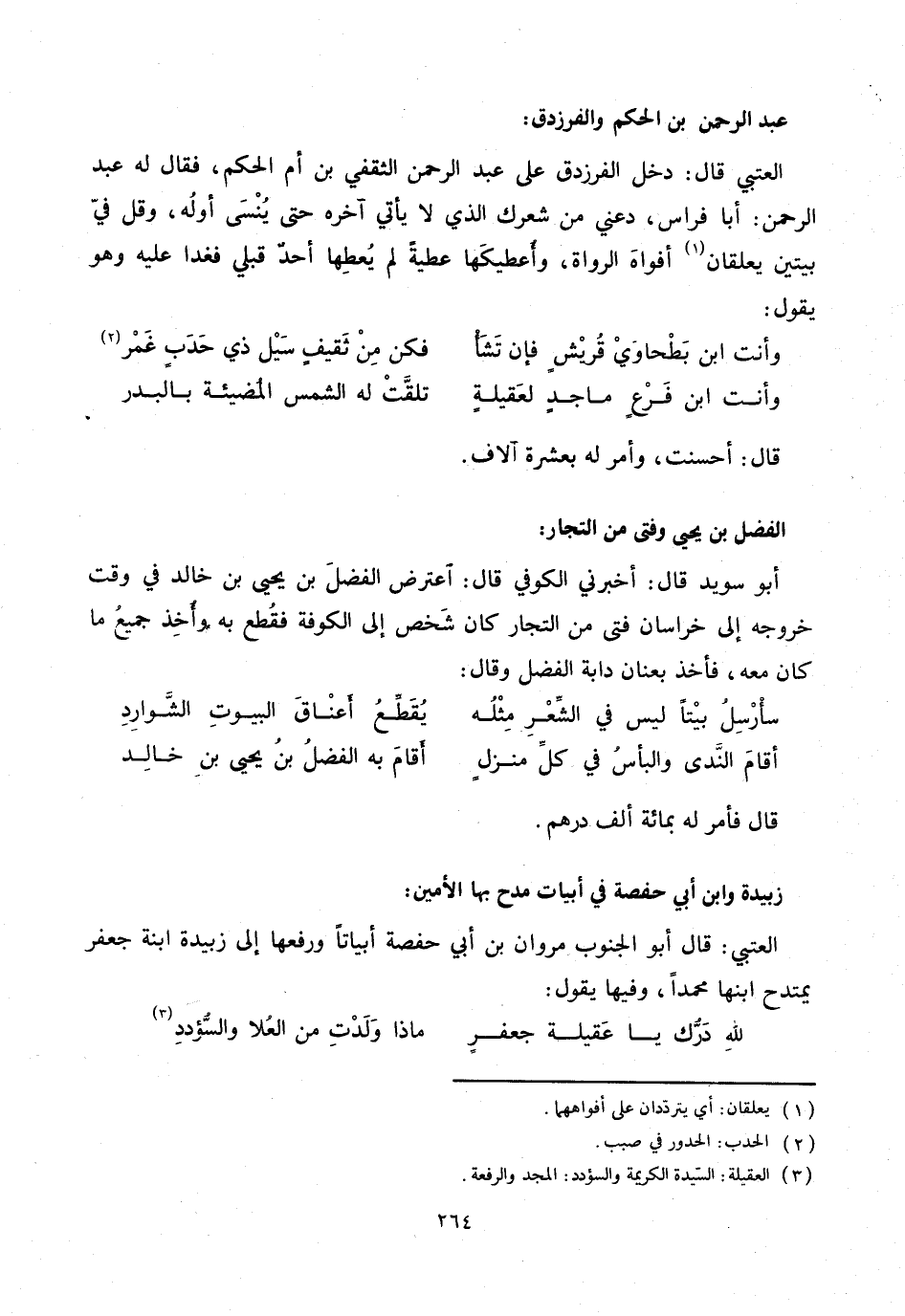: العتبي: قال أبو الجنوب مروان بن أبي حفصة أبياتا ورفعها إلى زبيدة ابنة جعفر يمتدح ابنها محمدا، وفيها يقول: