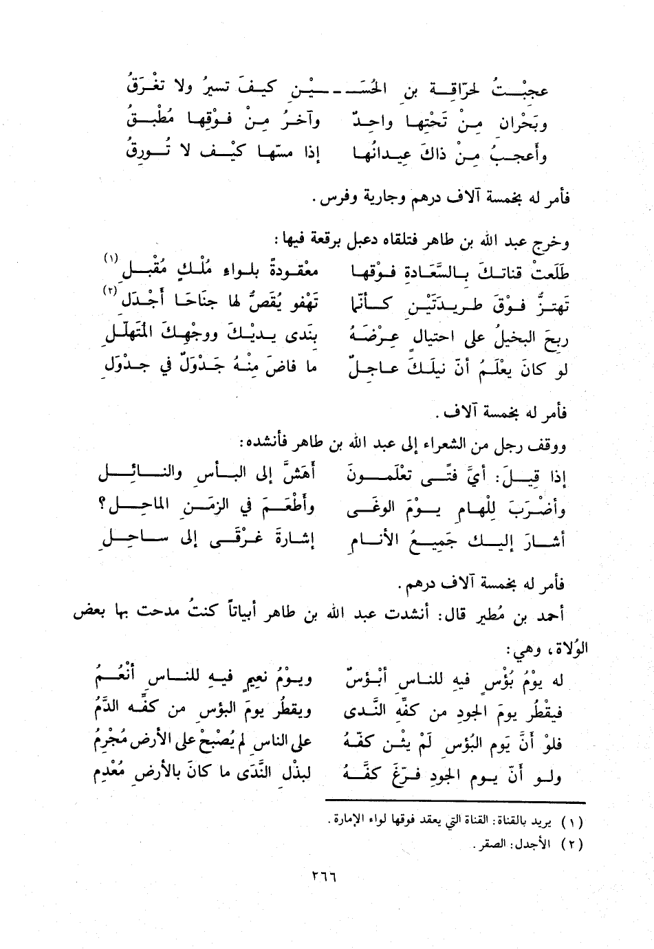 ووقف رجل من الشعراء إلى عبد الله بن طاهر فأنشده: