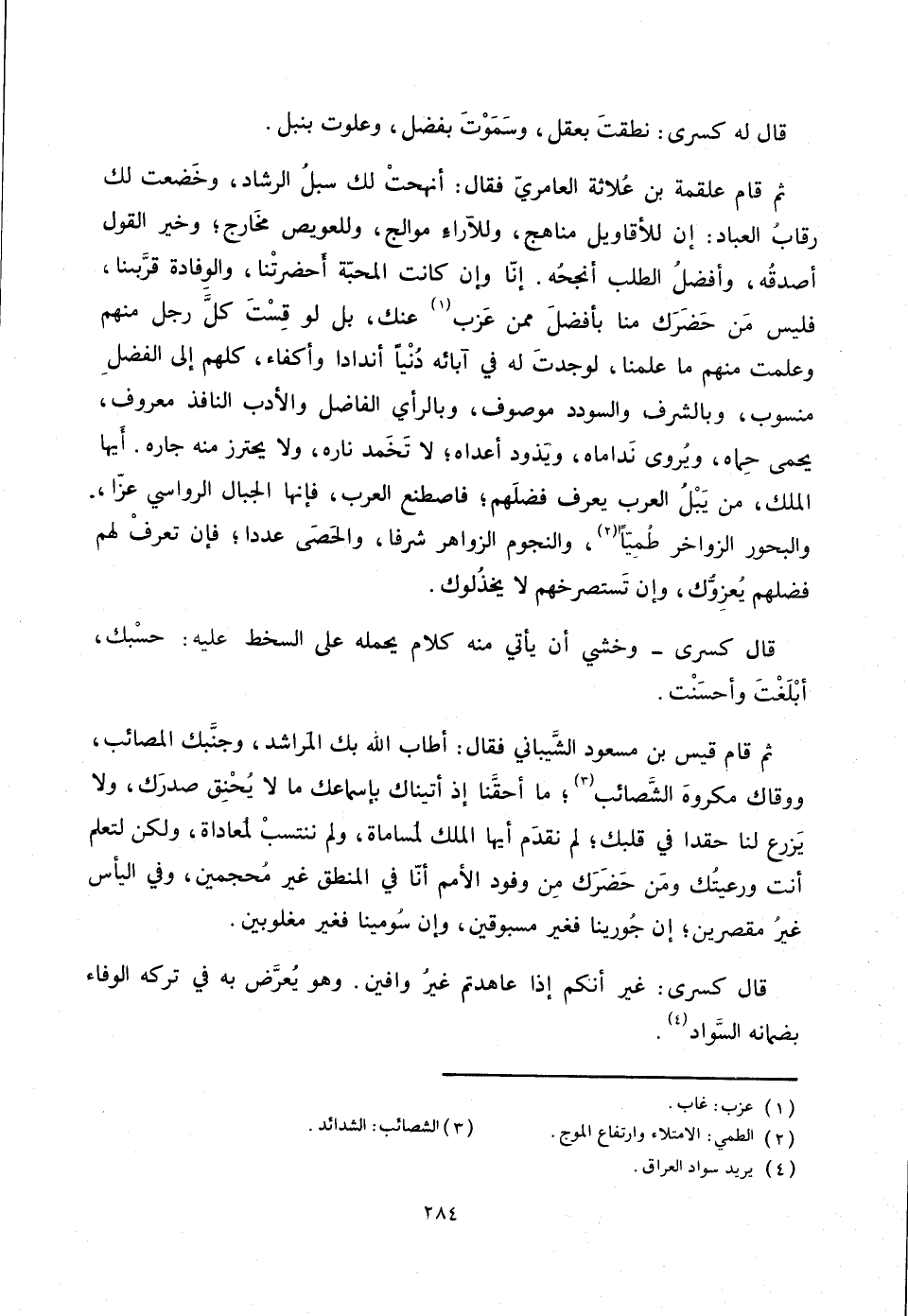قال كسرى- وخشي أن يأتي منه كلام يحمله على السخط عليه: حسبك، أبلغت وأحسنت.