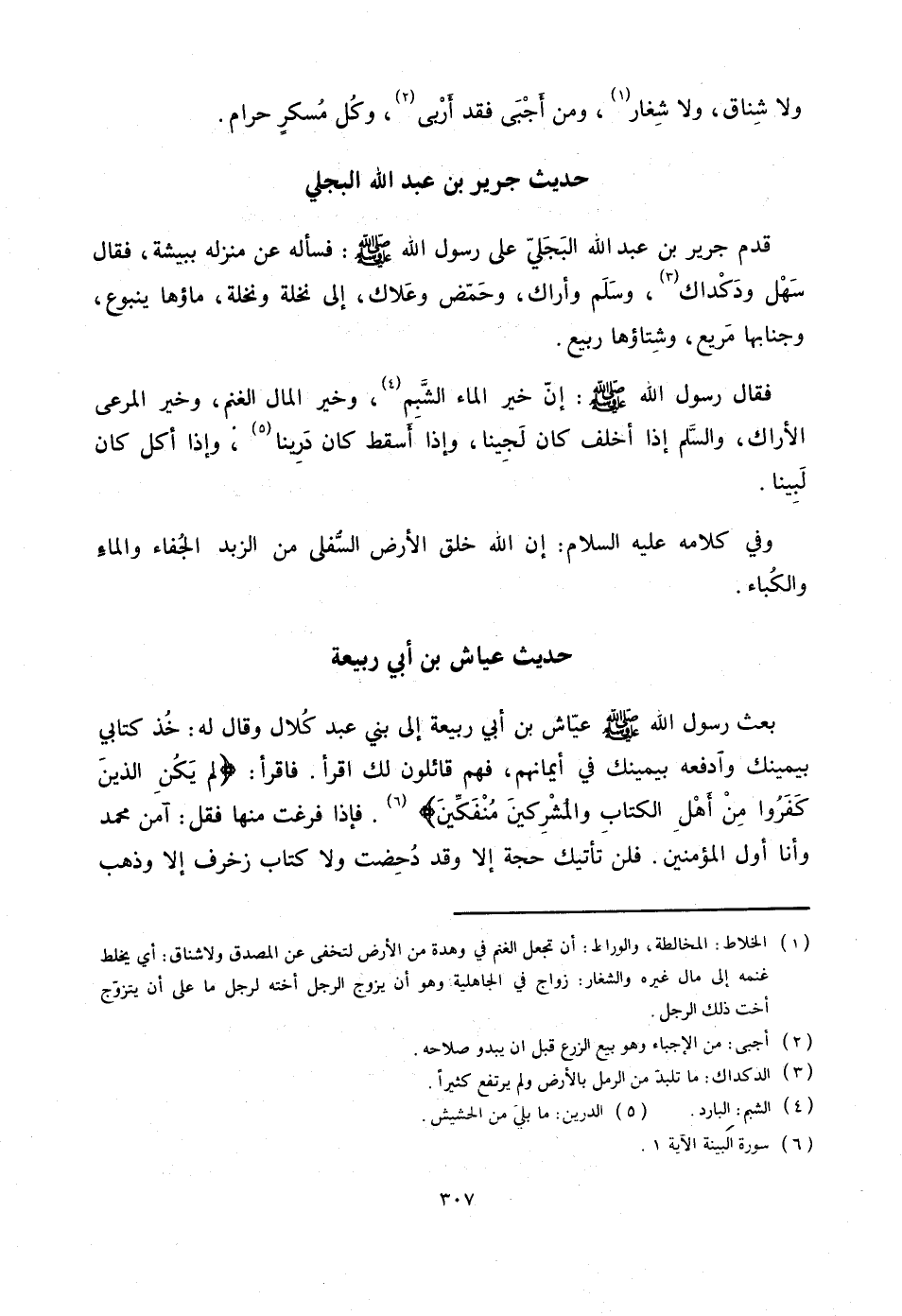 بعث رسول الله صلّى الله عليه وسلّم عيّاش بن أبي ربيعة إلى بني عبد كلال وقال له: خذ كتابي بيمينك وادفعه بيمينك في أيمانهم، فهم قائلون لك اقرأ. فاقرأ: لَمْ يَكُنِ الَّذِينَ كَفَرُوا مِنْ أَهْلِ الْكِتابِ وَالْمُشْرِكِينَ مُنْفَكِّينَ