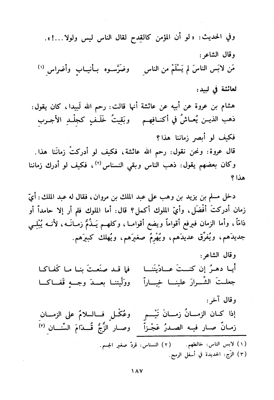 وكان بعضهم يقول: ذهب الناس وبقي النسناس «2» ، فكيف لو أدرك زماننا هذا؟