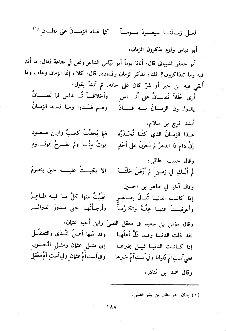 لعل زماننا سيعود يوما ... كما عاد الزمان على بطان «1»