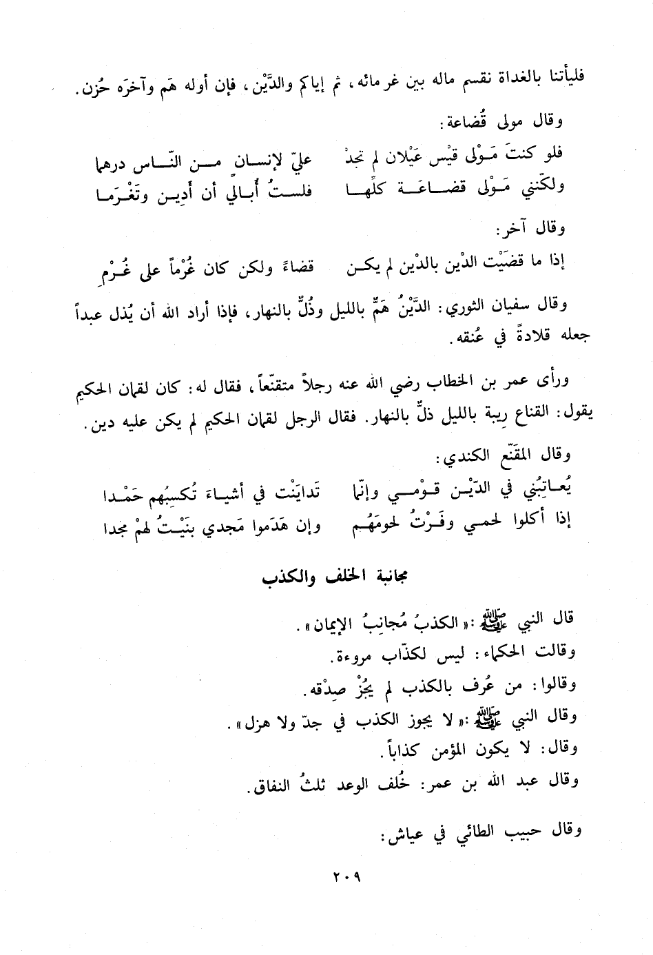وقال سفيان الثوري: الدّين همّ بالليل وذلّ بالنهار، فإذا أراد الله أن يذل عبدا جعله قلادة في عنقه.