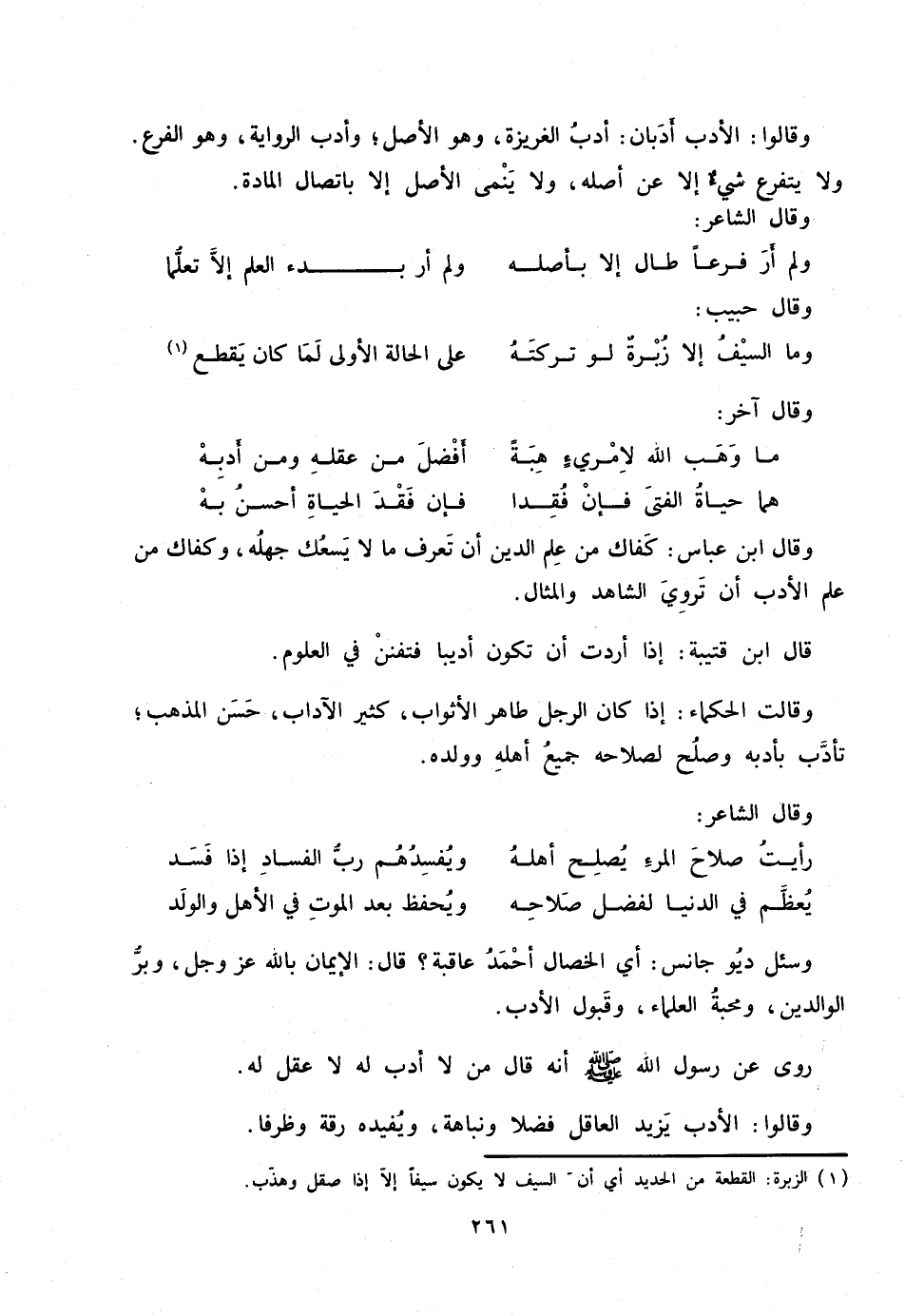 وقالوا: الأدب يزيد العاقل فضلا ونباهة، ويفيده رقة وظرفا.