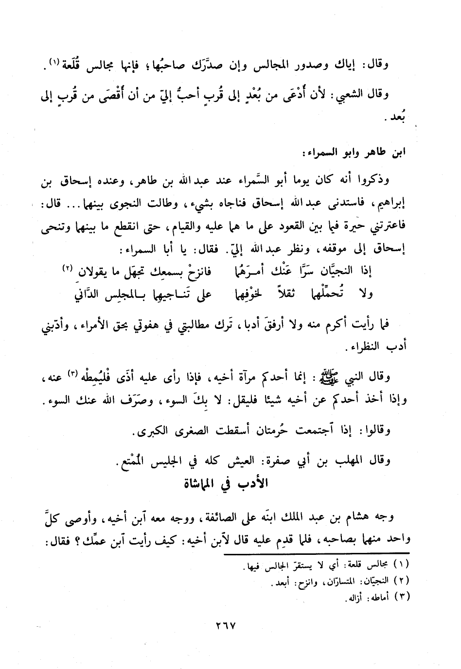 وقال: إياك وصدور المجالس وإن صدّرك صاحبها؛ فإنها مجالس قلعة «1» .