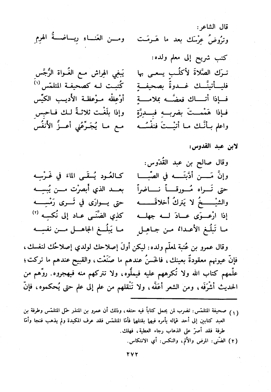 فليأتينّك غدوة بصحيفة ... كتبت له كصحيفة المتلمّس «1»
