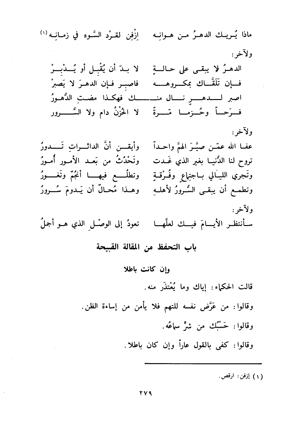 ماذا يريك الدهر من هوانه ... ازفن لقرد السّوء في زمانه «1»