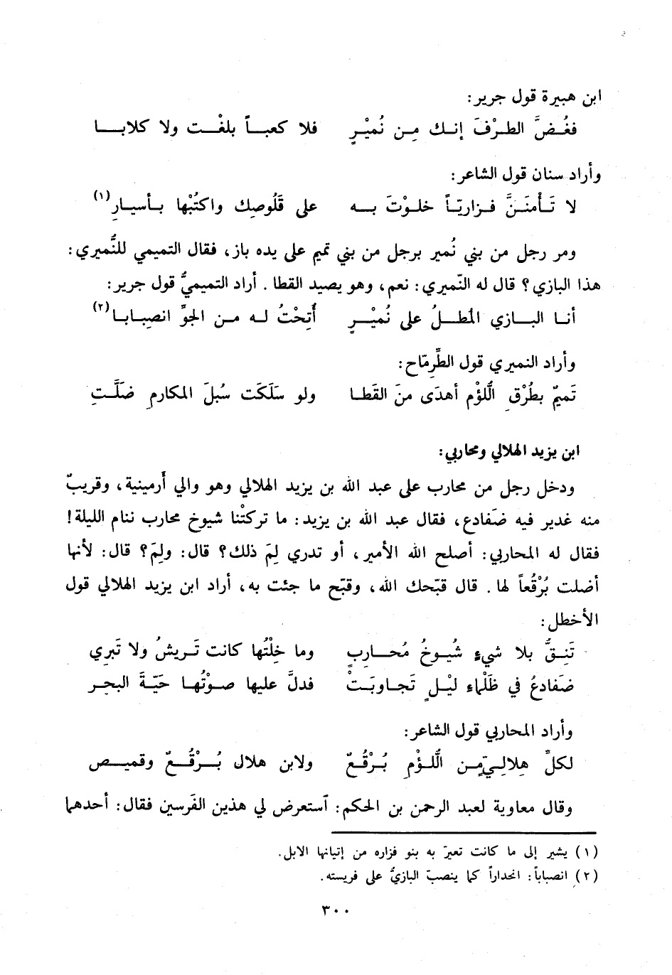 ومر رجل من بني نمير برجل من بني تميم على يده باز، فقال التميمي للنّميري:
