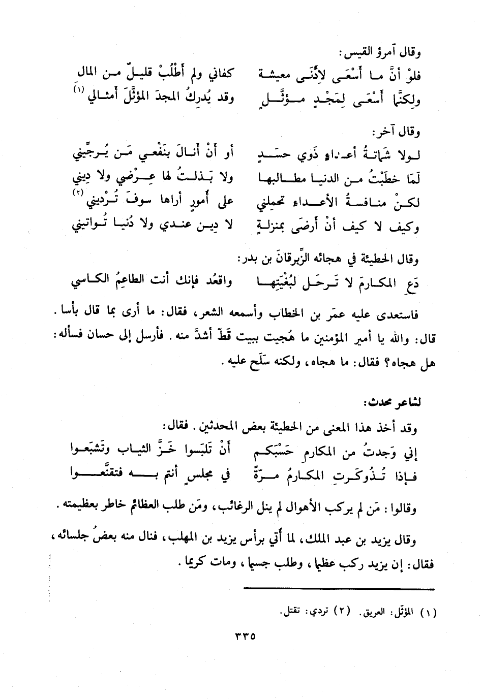 ولكنّما أسعى لمجد مؤثّل ... وقد يدرك المجد المؤثّل أمثالي»