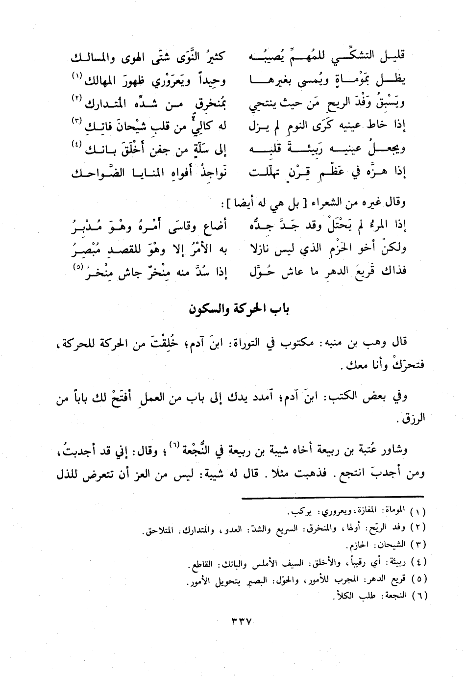 قال وهب بن منبه: مكتوب في التوراة: ابن آدم؛ خلقت من الحركة للحركة، فتحرّك وأنا معك.