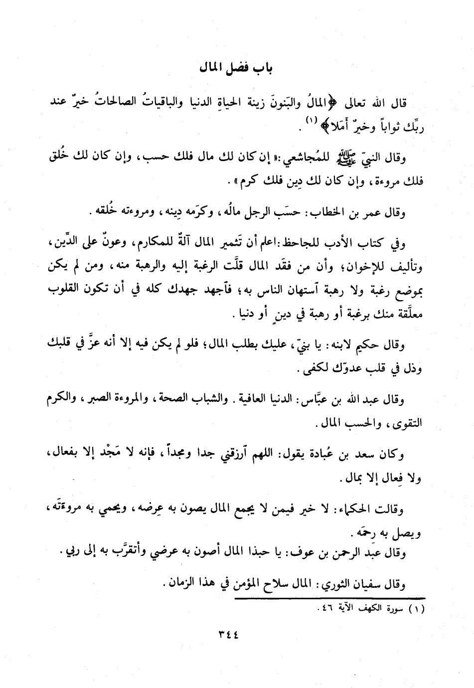 قال الله تعالى الْمالُ وَالْبَنُونَ زِينَةُ الْحَياةِ الدُّنْيا وَالْباقِياتُ الصَّالِحاتُ خَيْرٌ عِنْدَ رَبِّكَ ثَواباً وَخَيْرٌ أَمَلًا