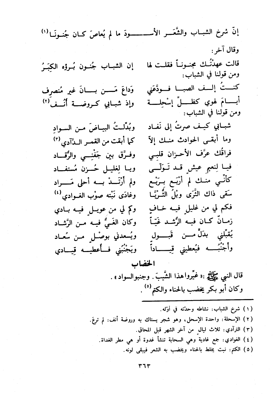 إنّ شرخ الشباب والشّعر الأس ... ود ما لم يعاص كان جنونا «1»