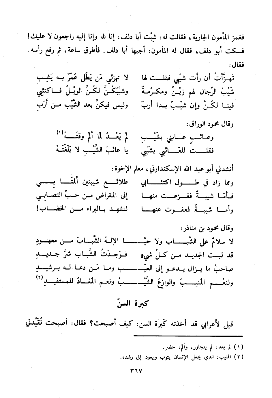 فقلت للعائبي بشيبي ... يا عائب الشّيب لا بلغته
