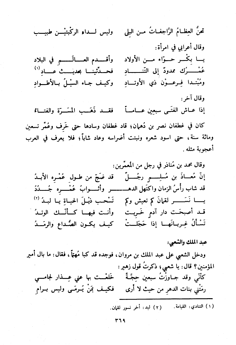 عمرك ممدود إلى التّناد ... فحدّثينا بحديث عاد «1»