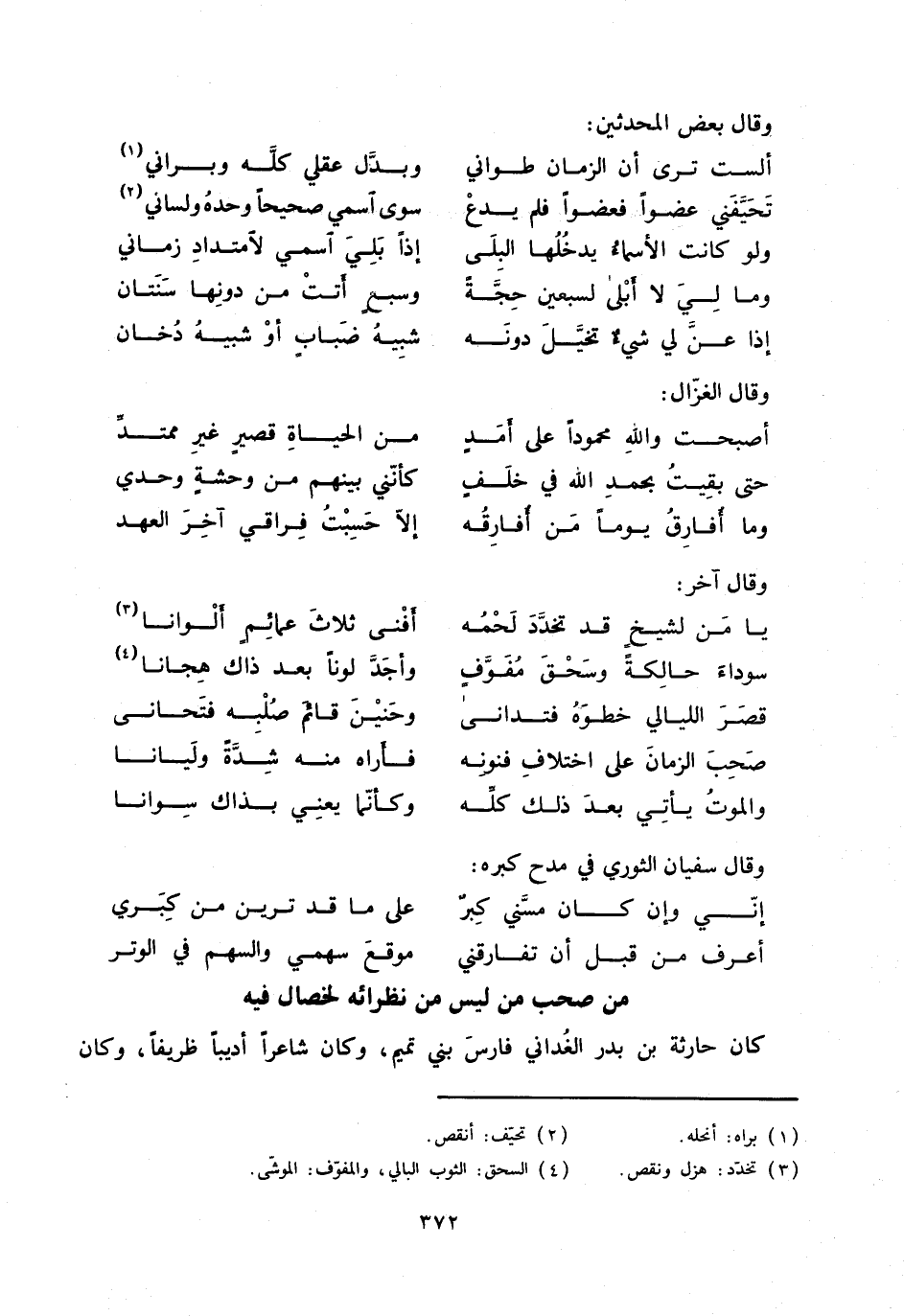 ألست ترى أن الزمان طواني ... وبدّل عقلي كلّه وبراني «1»