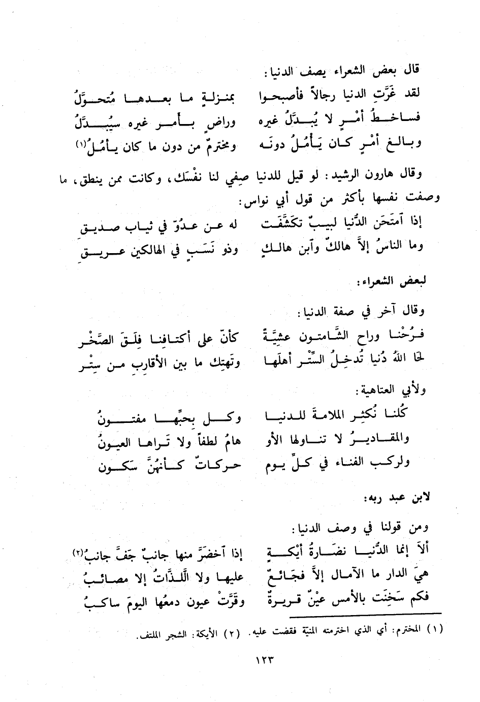 وقال هارون الرشيد: لو قيل للدنيا صفي لنا نفسك، وكانت ممن ينطق، ما وصفت نفسها بأكثر من قول أبي نواس: