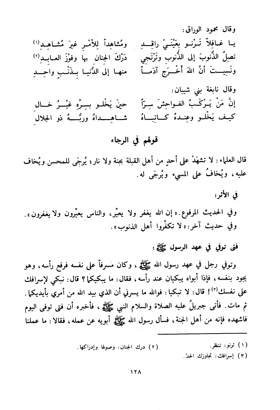 تصل الذّنوب إلى الذّنوب وترتجي ... درك الجنان بها وفوز العابد «2»