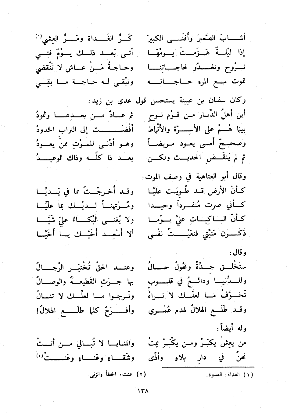 وكان سفيان بن عيينة يستحسن قول عدي بن زيد: