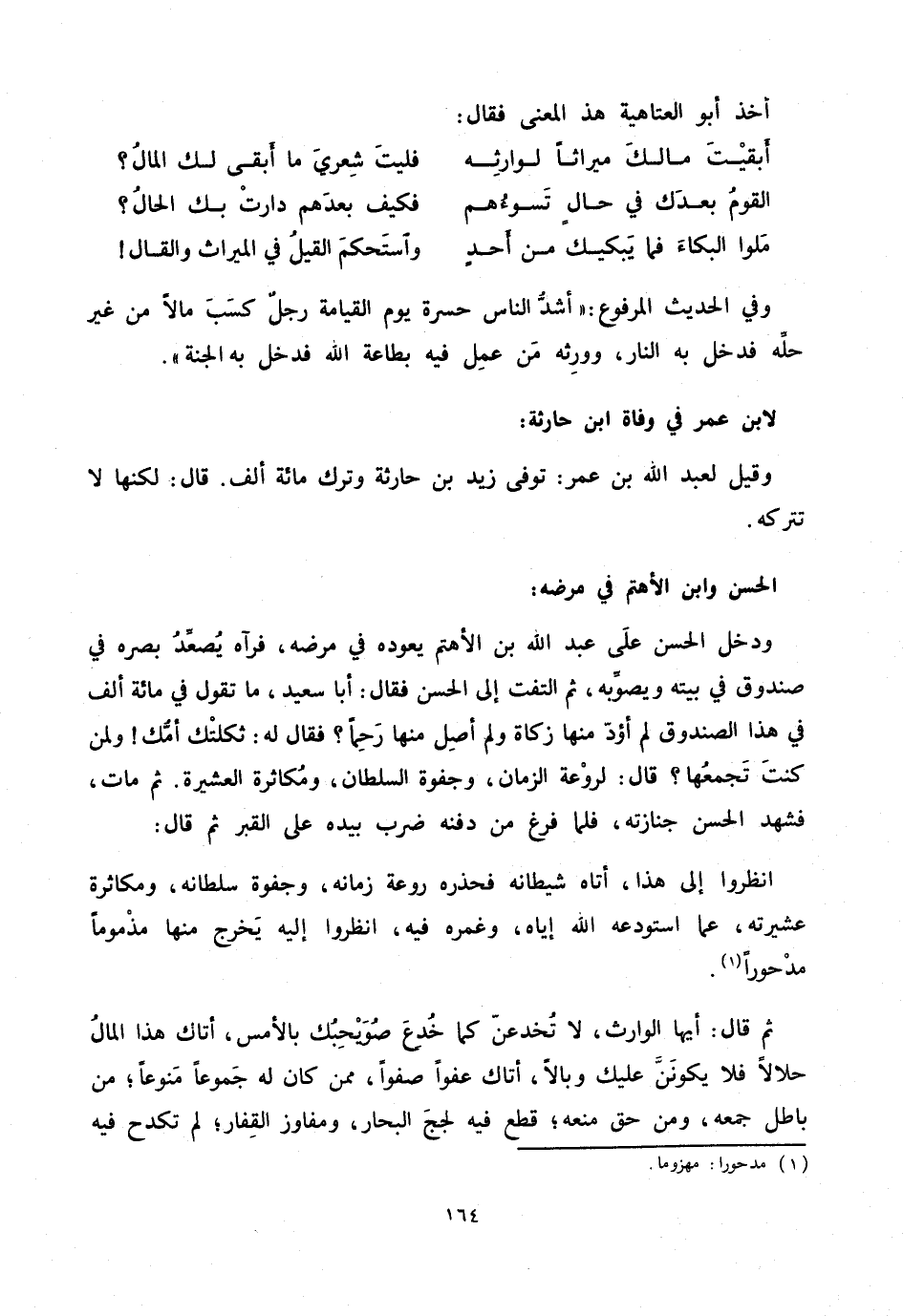 أبقيت مالك ميراثا لوارثه ... فليت شعري ما أبقى لك المال؟