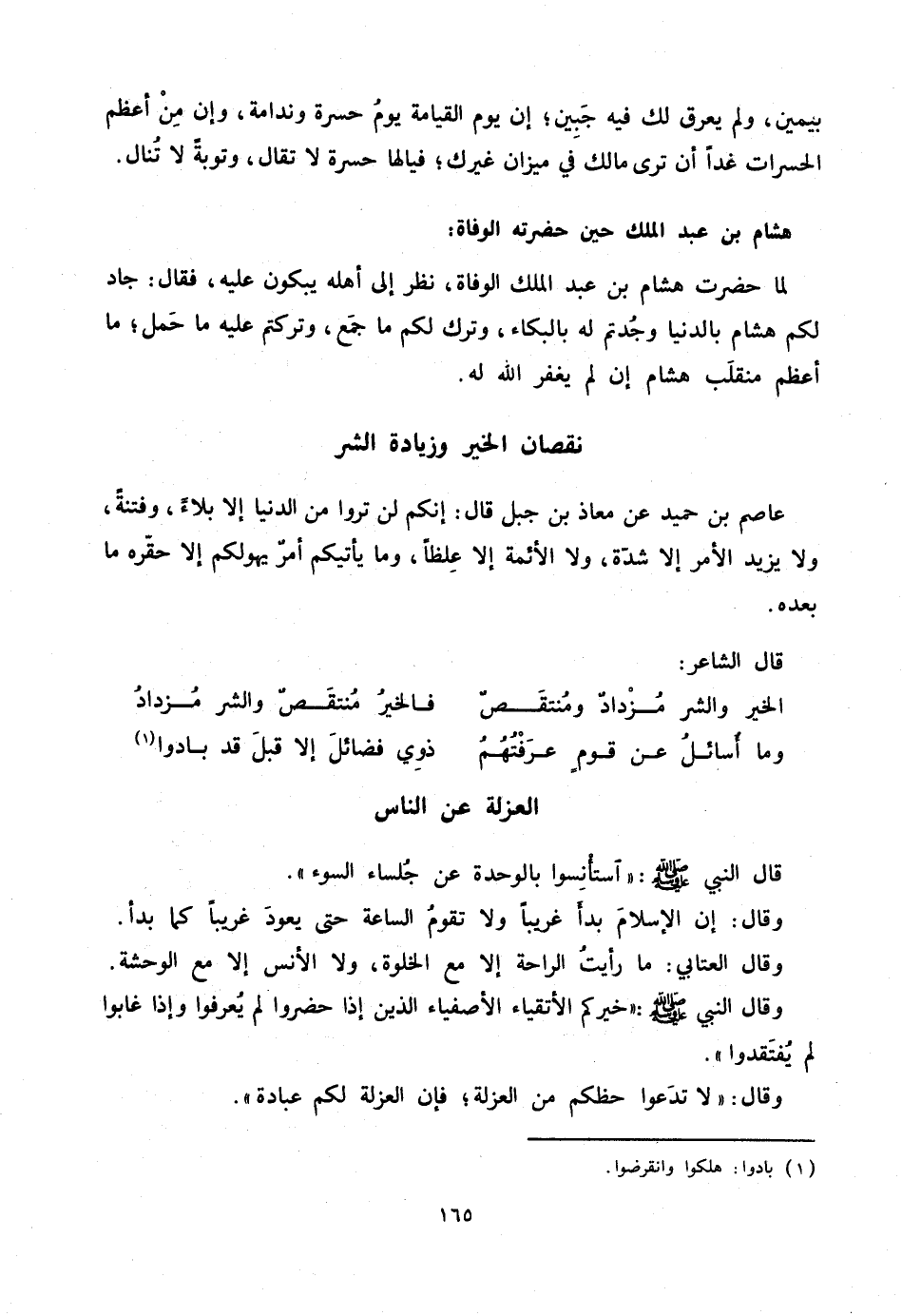 لما حضرت هشام بن عبد الملك الوفاة، نظر إلى أهله يبكون عليه، فقال: جاد لكم هشام بالدنيا وجدتم له بالبكاء، وترك لكم ما جمع، وتركتم عليه ما حمل؛ ما أعظم منقلب هشام إن لم يغفر الله له.