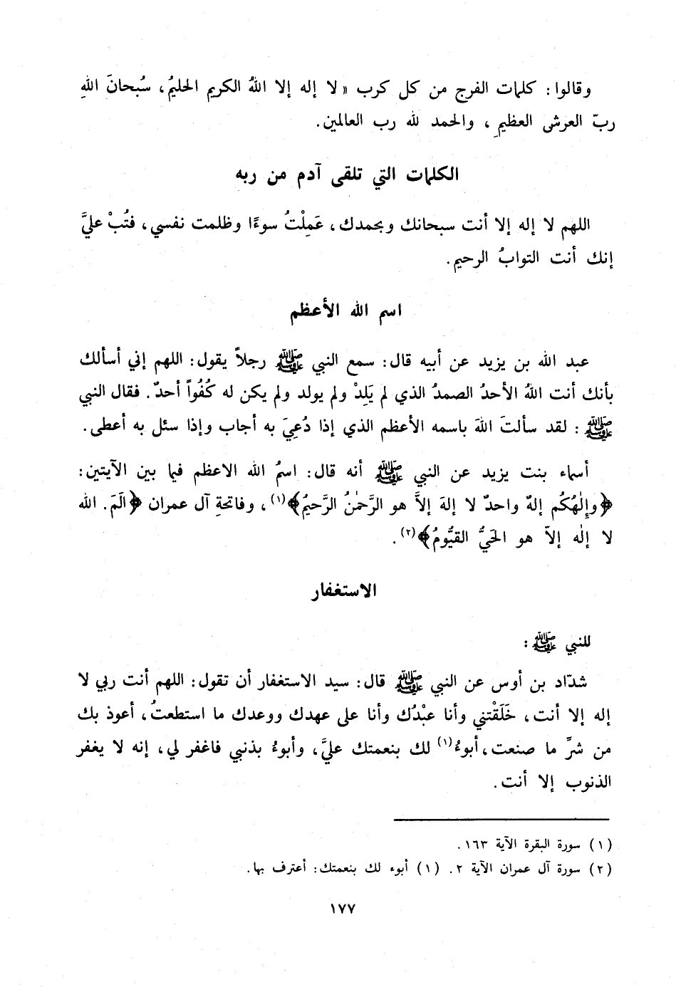 شدّاد بن أوس عن النبي صلّى الله عليه وسلم قال: سيد الاستغفار أن تقول: اللهم أنت ربي لا إله إلا أنت، خلقتني وأنا عبدك وأنا على عهدك ووعدك ما استطعت، أعوذ بك من شرّ ما صنعت، أبوء «3» لك بنعمتك عليّ، وأبوء بذنبي فاغفر لي، إنه لا يغفر الذنوب إلا أنت.