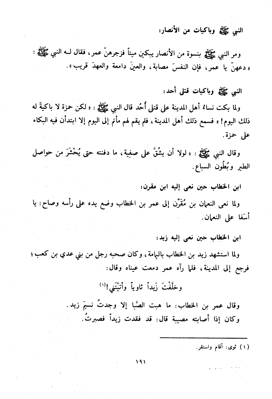 النبي صلّى الله عليه وسلم وباكيات قتلى أحد: