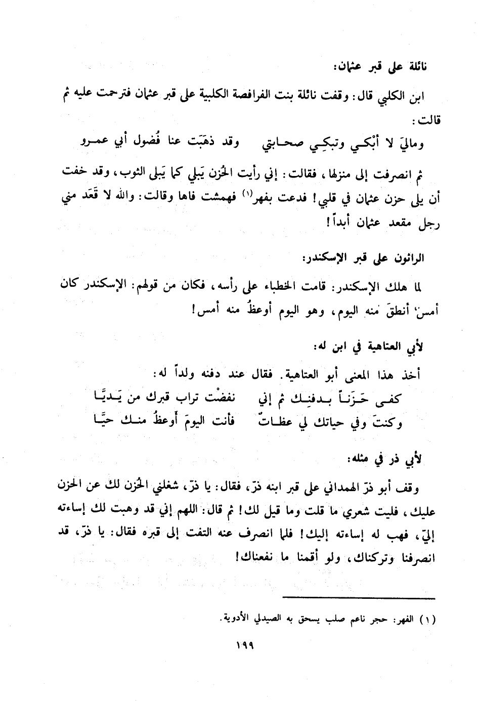 ابن الكلبي قال: وقفت نائلة بنت الفرافصة الكلبية على قبر عثمان فترحمت عليه ثم قالت: