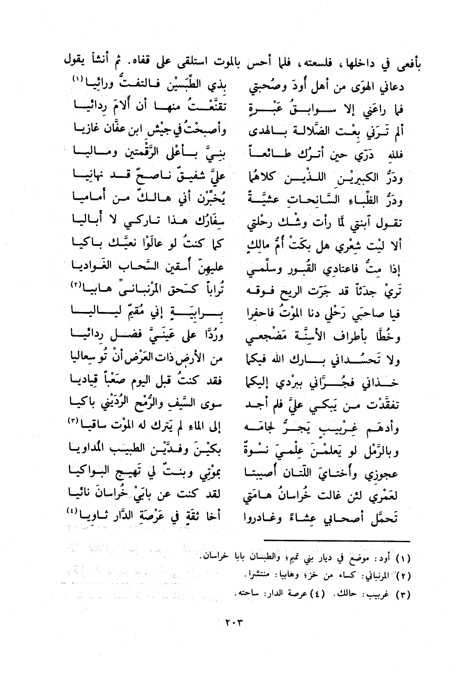 لعمري لئن غالت خراسان هامتي ... لقد كنت عن بابي خراسان نائيا