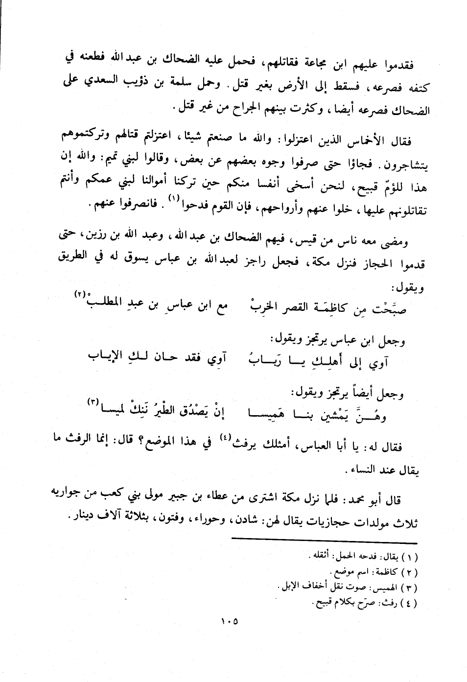 ومضى معه ناس من قيس، فيهم الضحاك بن عبد الله، وعبد الله بن رزين، حتى قدموا الحجاز فنزل مكة، فجعل راجز لعبد الله بن عباس يسوق له في الطريق ويقول:
