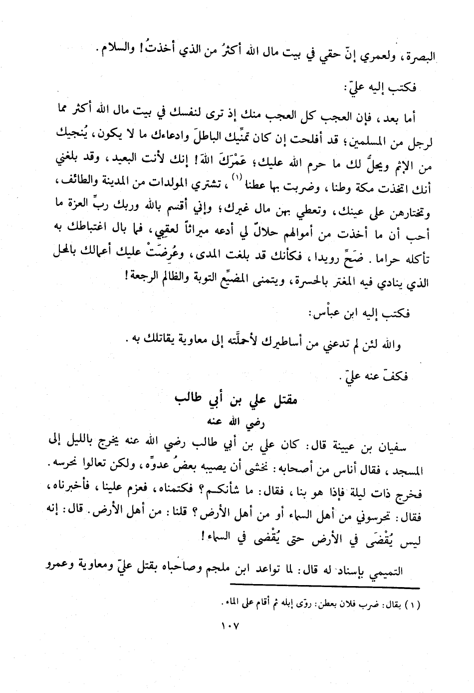 البصرة، ولعمري إنّ حقي في بيت مال الله أكثر من الذي أخذت! والسلام.