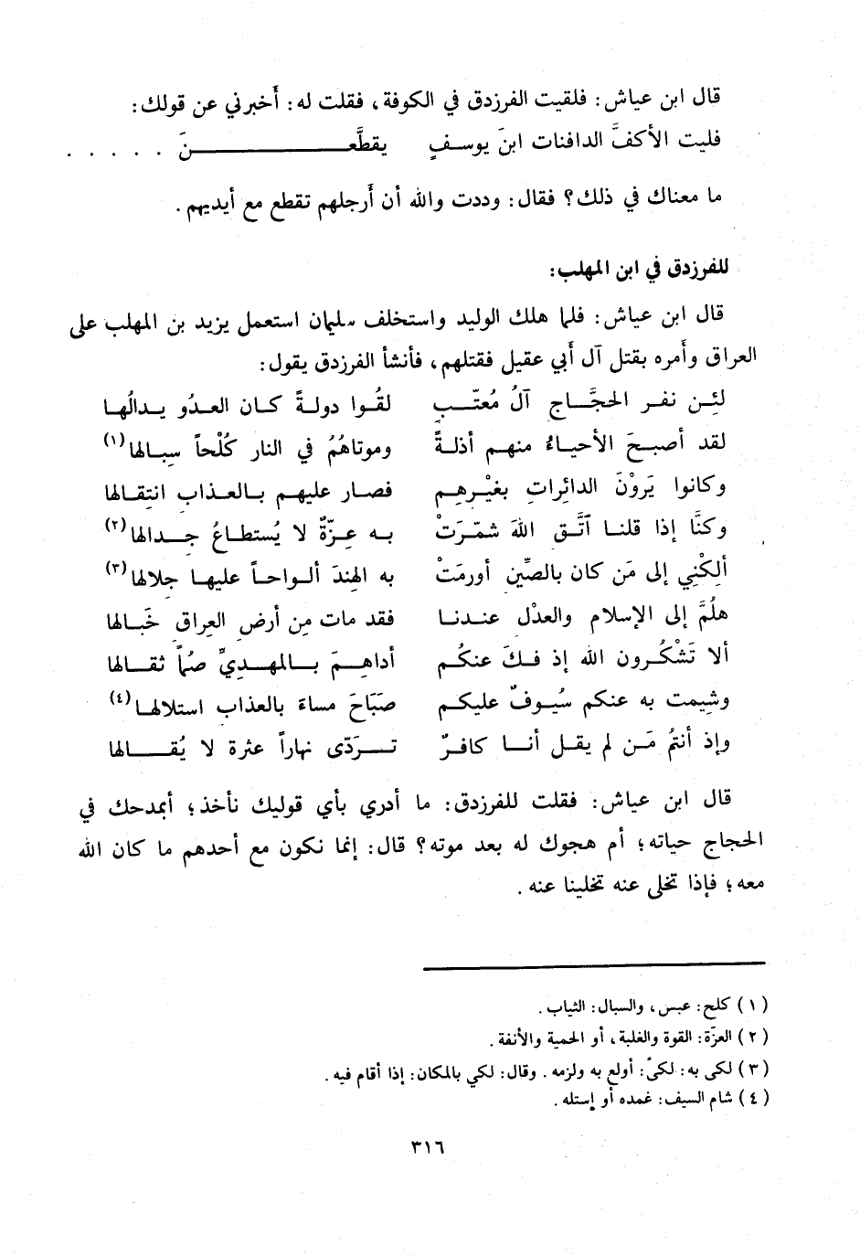 قال ابن عياش: فلقيت الفرزدق في الكوفة، فقلت له: أخبرني عن قولك: