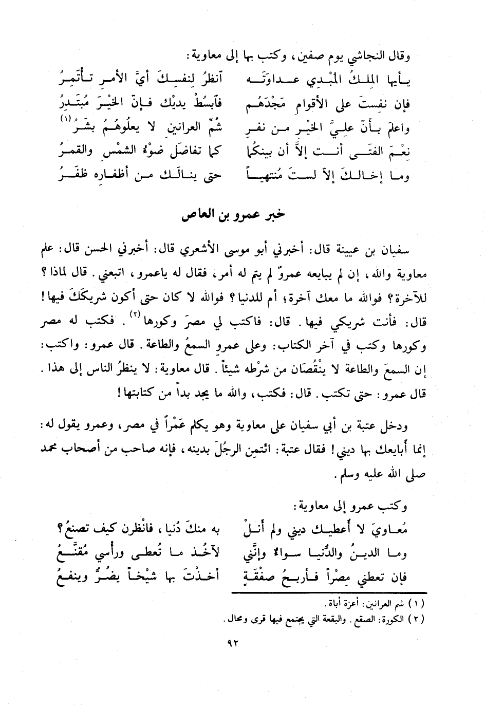 قال عمرو: حتى تكتب. قال: فكتب، والله ما يجد بدا من كتابتها! ودخل عتبة بن أبي سفيان على معاوية وهو يكلم عمرا في مصر، وعمرو يقول له: