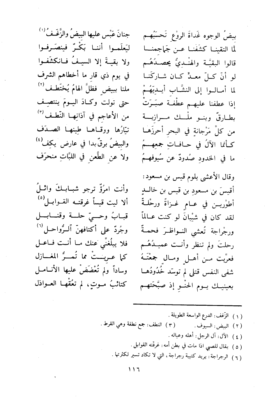 بيض الوجوه غداة الروع تحسبهم ... جنان عبس عليها البيض والزّغف «1»
