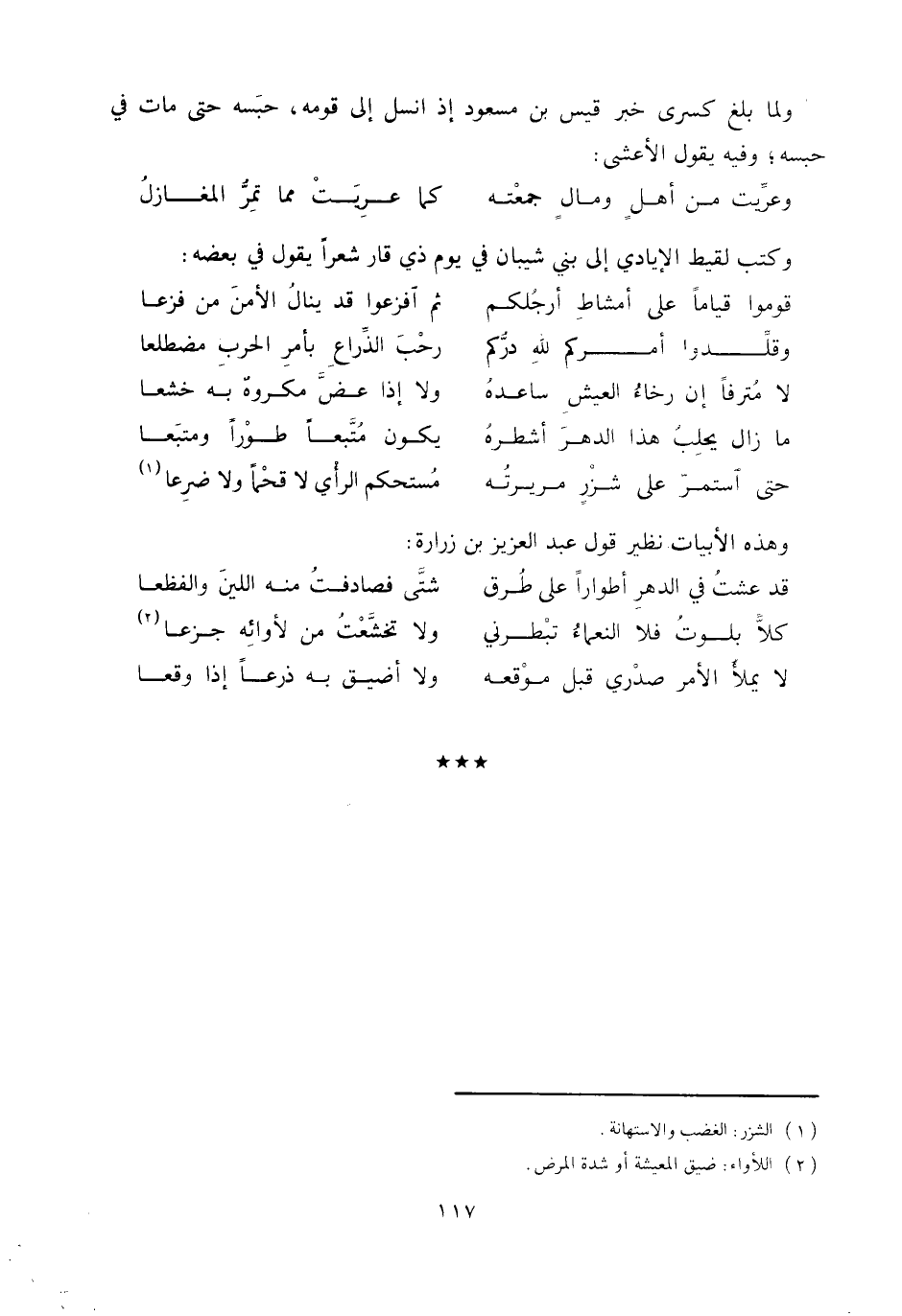 وهذه الأبيات نظير قول عبد العزيز بن زرارة: